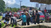 Jaga Kelancaran Lalin Akibat Pohon Tumbang, Kapolsek Kadudampit Bantu Warga Bereskan Pohon