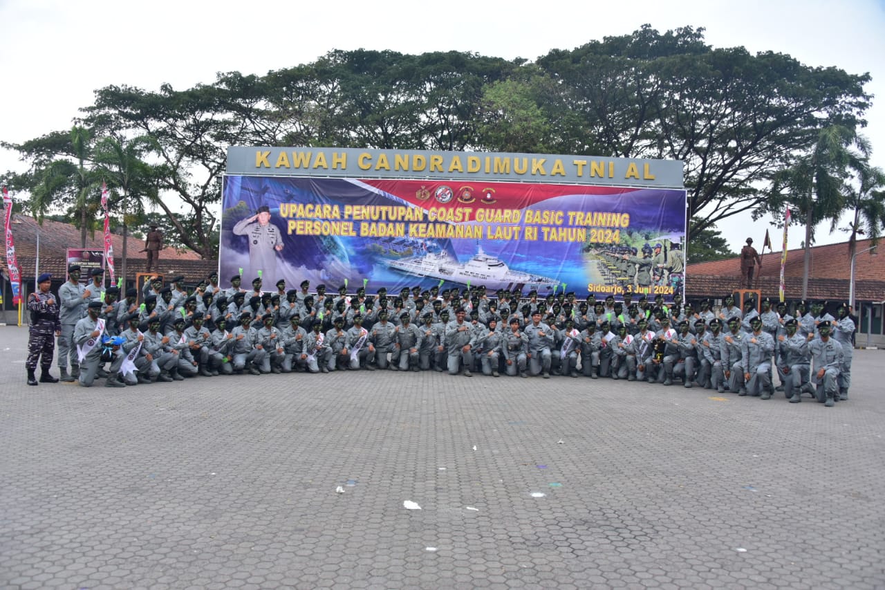 SURABAYA – Pelatihan Coast Guard Basic Training (CGBT) bagi personel PPPK 2024 Bakamla RI resmi ditutup. Upacara penutupan CGBT dipimpin oleh Sekretaris Utama (Sestama) Bakamla RI Laksda TNI Tatit Eko Witjaksono, S.E., M.Tr. (Han), di Puslatdiksarmil, Surabaya, Kemarin.