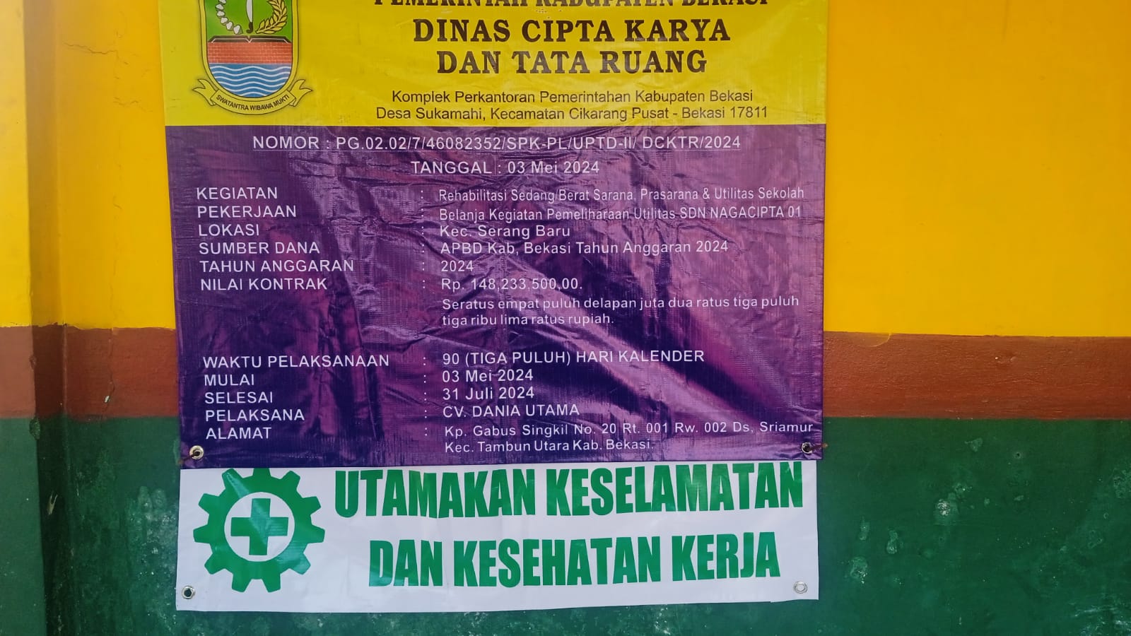KAB.BEKASI – Terkait berita yang beredar di media online tentang kegiatan pemasangan paving blok di SDN Nagacipta 01, Kecamatan Serang Baru terkait papan informasi kegiatan dan K3.
