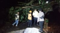 “Tadi saya mendapat laporan dari warga, m lalui Telephone WhatsApp telah terjadi longsor dapuran bambu, di kebon Kawung kemudian saya langsung tinjau ke sini, dan ya seperti ini, akses saat ini tidak bisa di lalui kendaraan roda dua maupun roda empat.” Ujarnya di lokasi kejadian