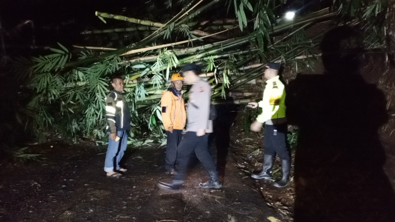 Akses jalan Cisarua Pasirdatar Ruas Jalan Kabupaten Sukabumi, tak dapat dilalui kendaraan Baik Roda Dua maupun Roda empat, Ruas jalan tertutup material Longsor Dapuran Bambu yang di akibatkan Dari hujan Deras yang mengguyur kawasan Kadudampit pada Sabtu siang hingga menjelang Sore. Sabtu 7 Maret 2025.