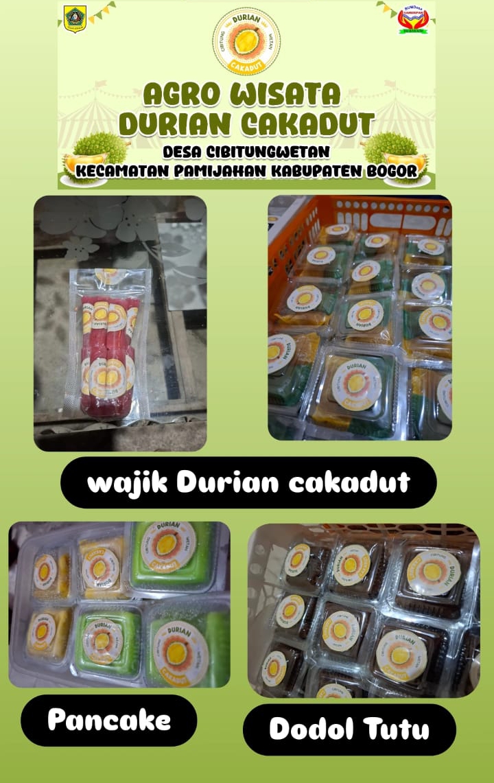 Produk olahan seperti Wajik Durian Cakadut, Pancake dan Dodol Tutu ini lahir dari tangan-tangan terampil yang tergabung dalam Agro Wisata Durian Cakadut, yang berfokus pada pemanfaatan dan pengembangan buah durian sebagai produk unggulan desa. Dengan melimpahnya hasil panen durian lokal, para pengrajin dan pelaku usaha di desa Cibitung Wetan berkreasi menghasilkan berbagai inovasi berbasis durian, baik dalam bentuk makanan, minuman, maupun produk turunannya.