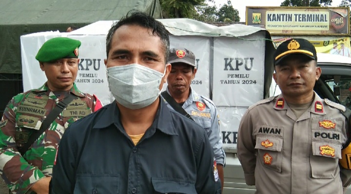 “Alhamdulillah hari ini cuaca mendukung armada cukup lengkap, KPPPS juga mendampingi, pihak TNI POLRI juga Linmas dan seluruh unsur masyarakat kondusif untuk di kecamatan kadudampit, untuk mengawal dari Gudang logistik kecamatan kadudampit untuk mengawal.ke TPS masing-masing.” terang ketua bidang Divisi Hukum dan logistik.