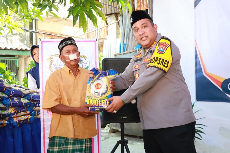 “Hari ini kami memberikan santunan kepada 100 paket sembako dan santunan 55 anak yatim,” ujar Kapolres.