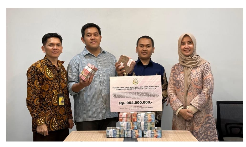Bahwa Uang Rampasan dan Uang Pengganti sebesar Rp.954.000.0000,- (Sembilan Ratus Lima Puluh Empat Juta Rupiah) tersebut selanjutnya oleh Bendahara Penerimaan pada Kejaksaan Negeri Kabupaten Tasikmalaya beserta telah di setorkan ke Kas Negara melalui Bank Syariah Indonesia (BSI) Kantor Cabang Tasikmalaya sebagai Pendapatan Negara Bukan Pajak (PNBP) Kejaksaan Negeri Kabupaten Tasikmalaya.(*)