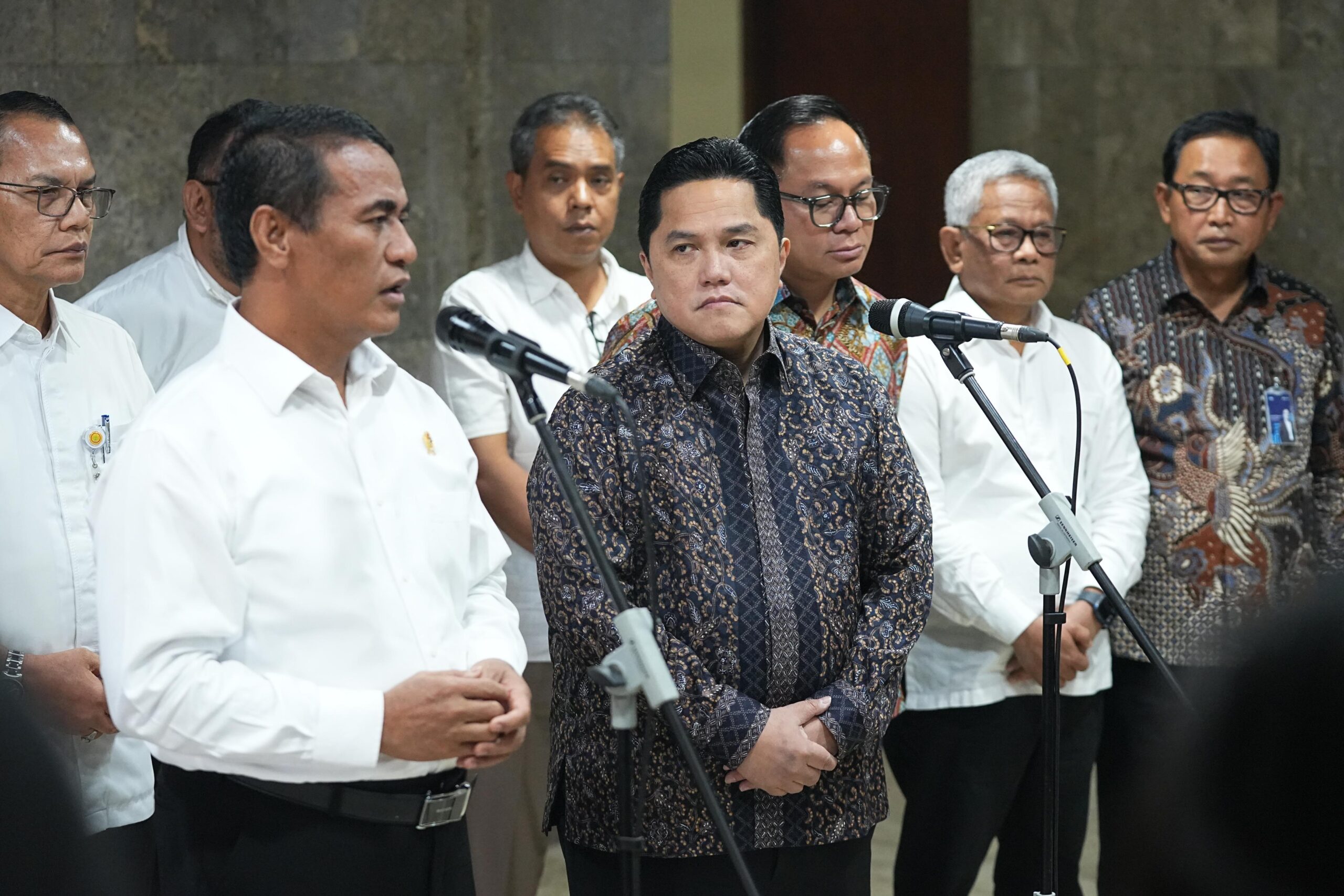 JAKARTA – Menteri Pertanian Andi Amran Sulaiman dan Menteri BUMN Erick Thohir bersama jajaran melakukan rapat koordinasi pada Selasa (22/10). Pertemuan membahas kolaborasi menyukseskan target swasembada pangan di masa pemerintahan Prabowo-Gibran.