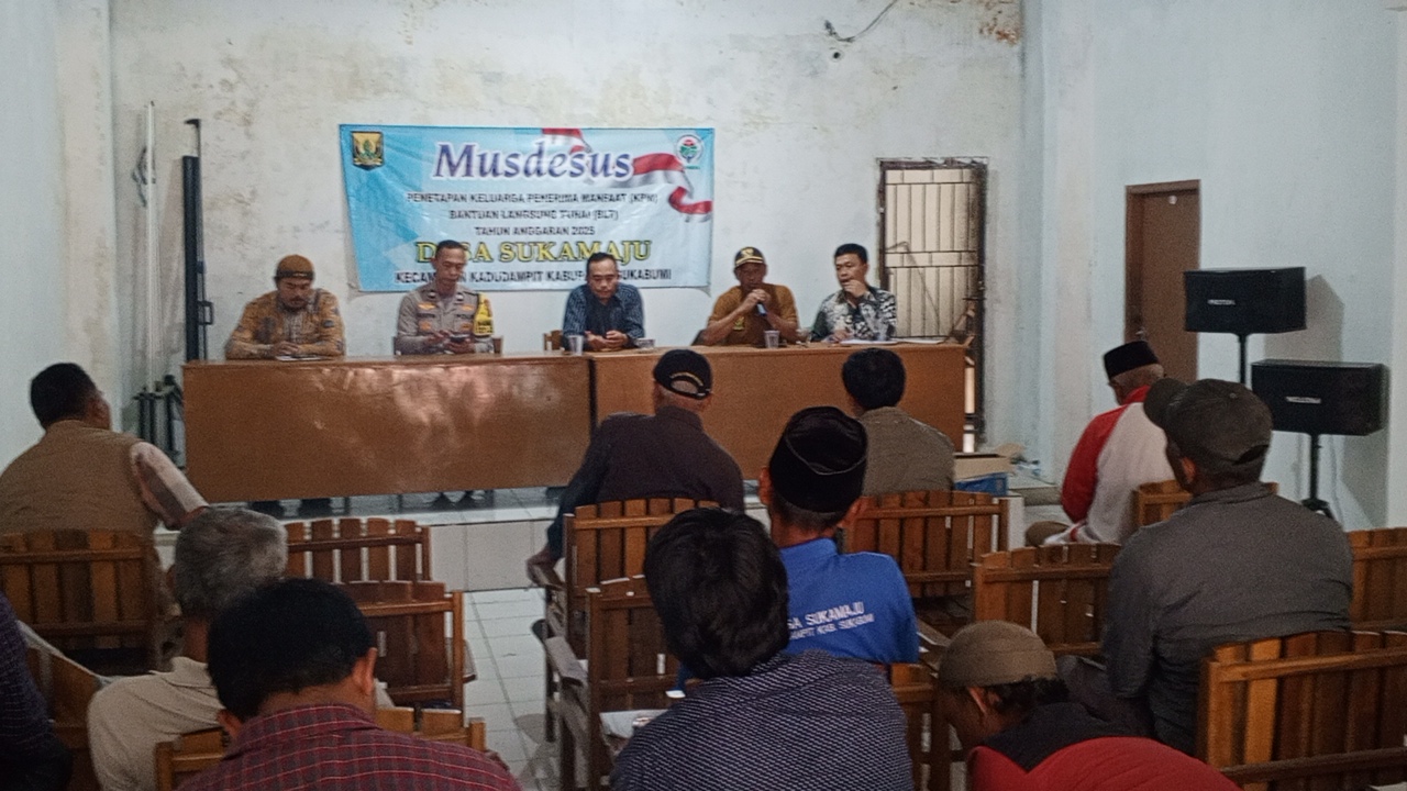 Dalam rangka musyawarah penetapan Penerimaan data BLT DD tahun Anggaran 2025, Pemerintah Desa Sukamaju kecamatan Kadudampit Sukabumi, melakukan rapat musyawarah khusus ( Musdesus ). Musdesus tersebut membahas tentang penetapan penerimaan BLT DD sesuai DTKS Desa yang bertujuan untuk di salurkan tepat sasaran. Kamis 27/02/25.
