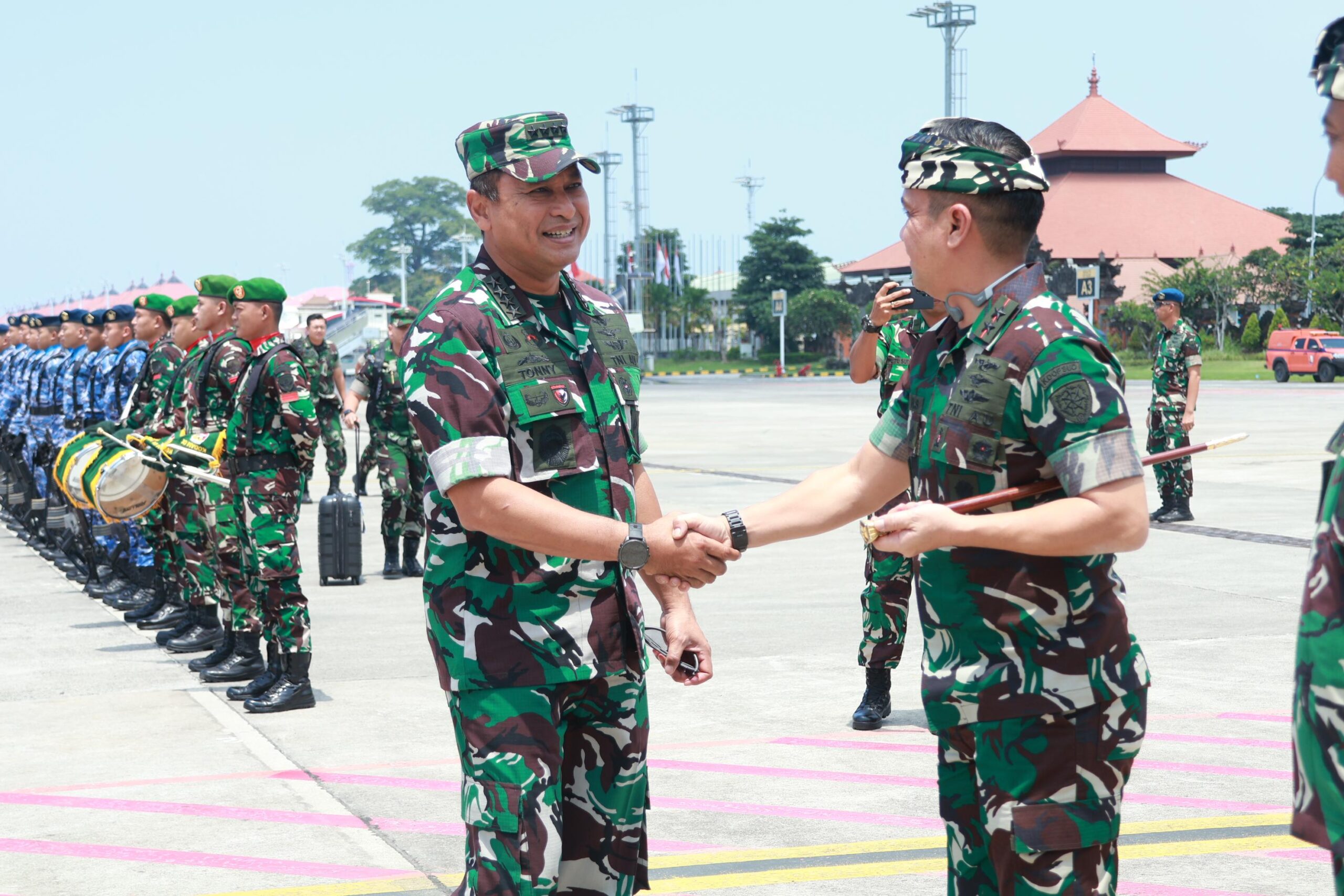 Lensareportase.com-Bali. Panglima Komando Operasi Udara II (Pangkoopsud II) Marsekal Muda TNI Deni Hasoloan S., didampingi Komandan Lanud I Gusti Ngurah Rai Kolonel Pnb Trinanda Hasan F., S.T., M.Han., menyambut kedatangan Kepala Staf Angkatan Udara (Kasau) Marsekal TNI M. Tonny Harjono, S.E., M.M., beserta rombongan di Apron Base Ops Lanud I Gusti Ngurah Rai, Bali, Sabtu (15/2/2025).