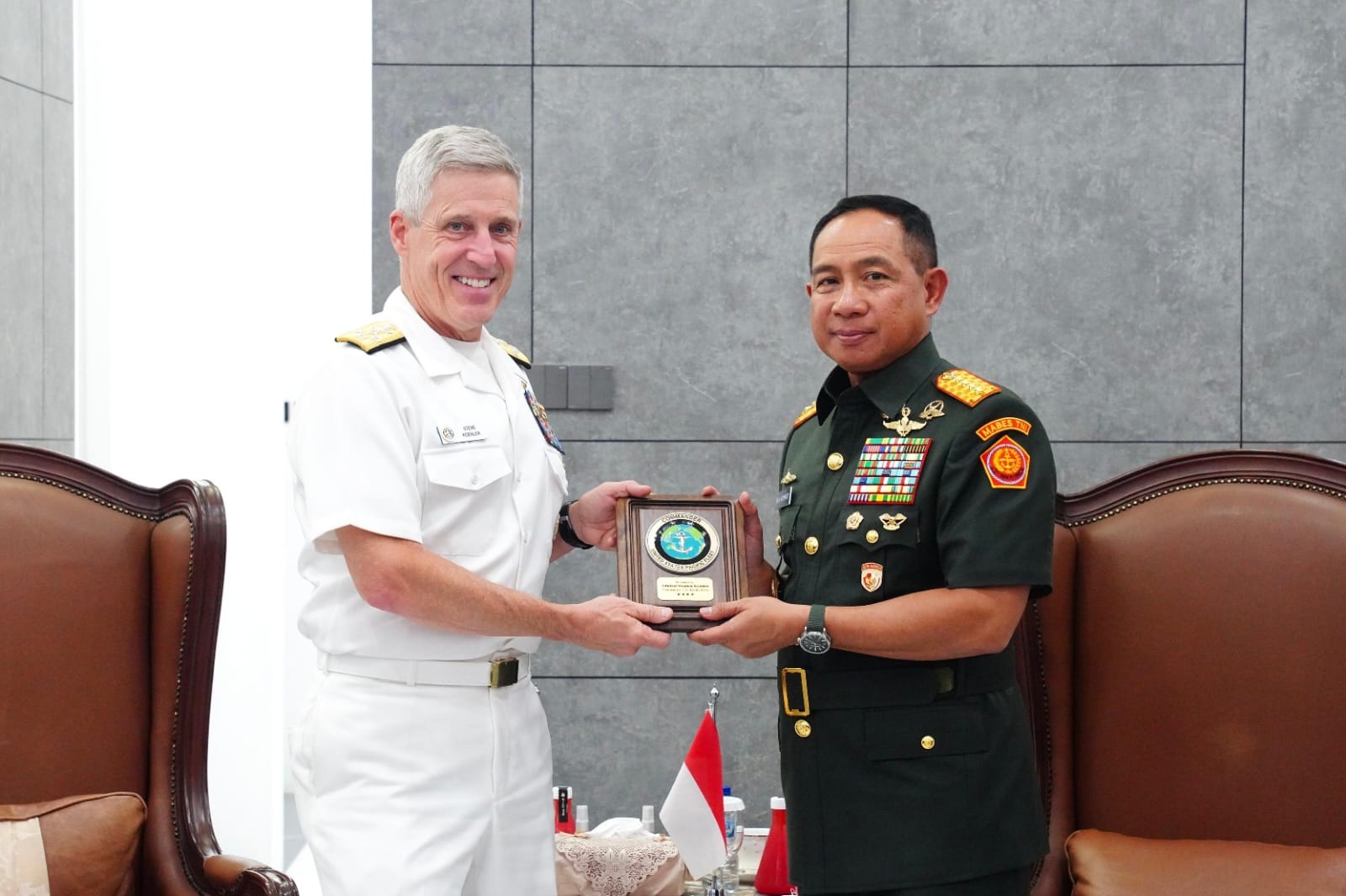 Lensareportase.com-Jakarta. (Puspen TNI). Panglima TNI Jenderal TNI Agus Subiyanto menerima Kunjungan Kehormatan Panglima Armada Pasifik Amerika Serikat Laksamana Stephen T. Koehler, bertempat di kantor Subden Merdeka Barat, Jakarta Pusat. Rabu. (19/2/2025).