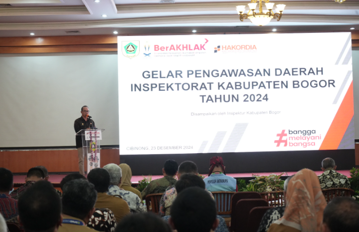 CIBINONG- Peringati Pemerintah Kabupaten (Pemkab) Bogor Hari Anti Korupsi Sedunia (Harkodia) tahun 2024, Pemerintah Kabupaten Bogor Gelar Pengawasan Daerah Tahun 2024 yang berlangsung di Aula Bappenda Kabupaten Bogor, Senin (23/12/24).