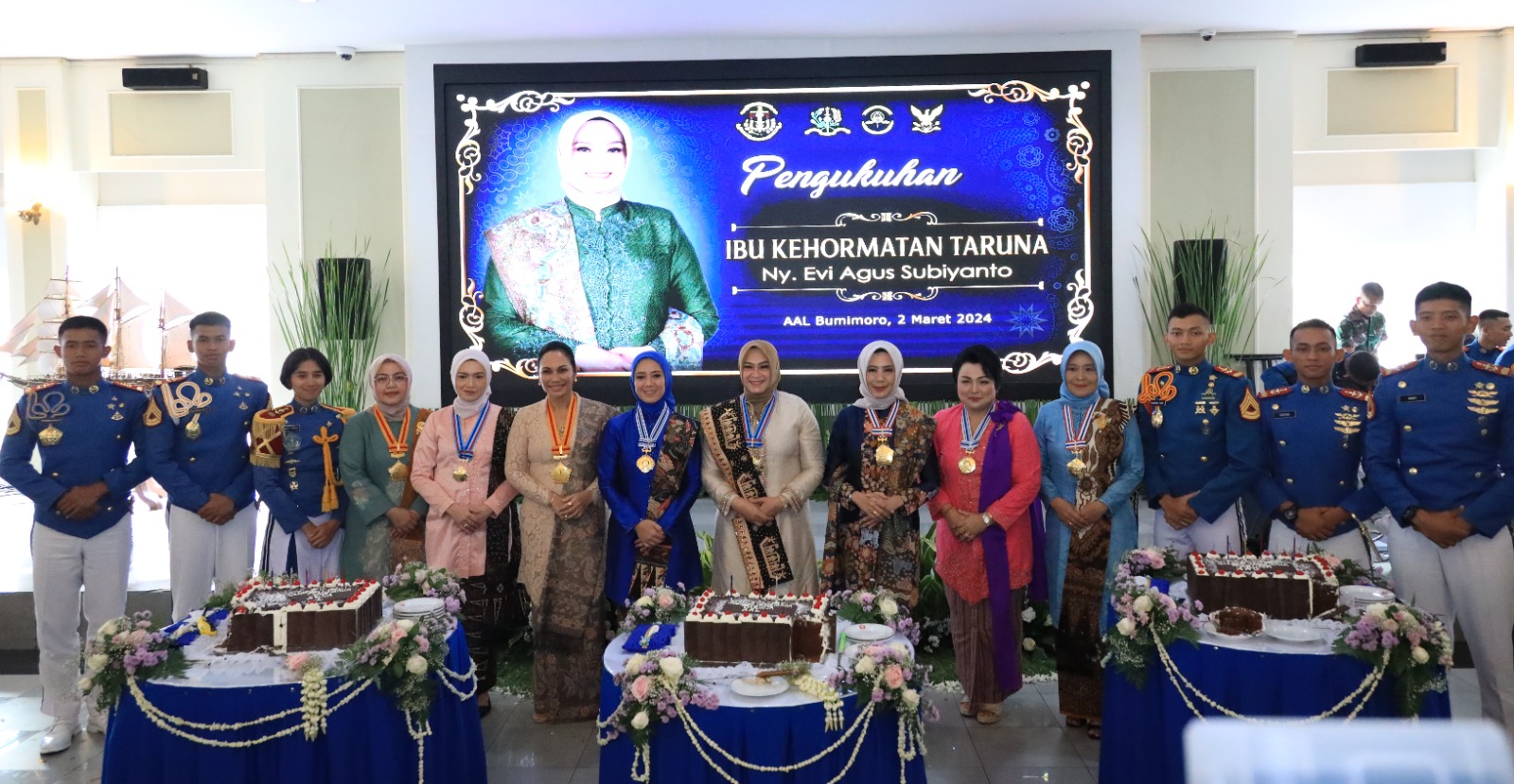 Surabaya – Ketua Umum (Ketum) Dharma Pertiwi (DP) Ny. Evi Agus Subiyanto dikukuhkan sebagai Ibu Kehormatan Taruna Akademi TNI, bertempat di Lapangan Aru Kesatrian AAL Bumimoro Surabaya, Sabtu (2/3/2024).