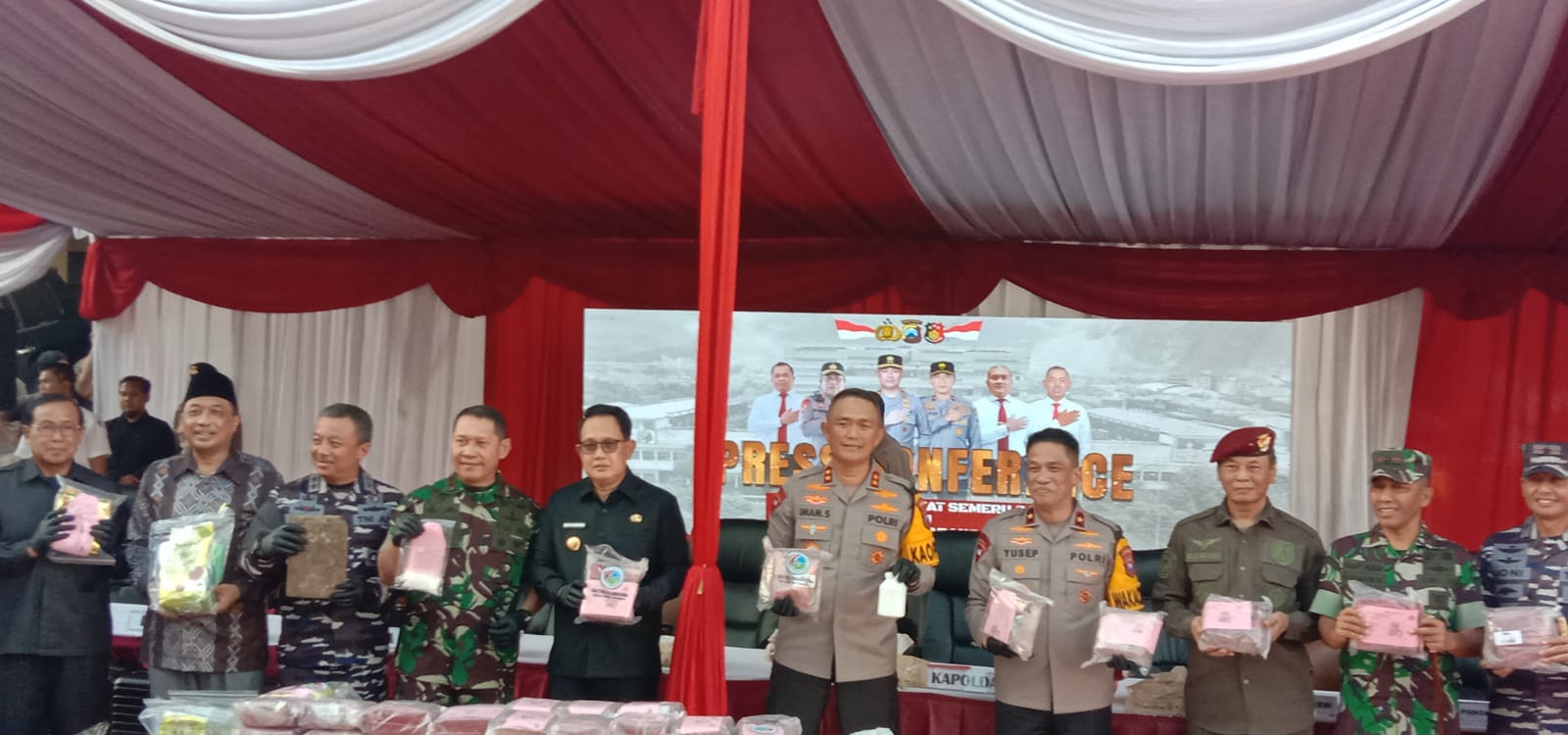 Barang bukti diamankan yakni, Uang tunai Rp. 148.898.000, HP 497 buah, miras ilegal 20.181 dan 4.443,8 liter di jerigen, serbuk handak 87,58 Kg, mercon/petasan 6.662 petasan, Sumbu ledak 487 sumbu, sabu 6,75888 Kg, Pil Extacy 400.828 butir, ganja 11 Kg.