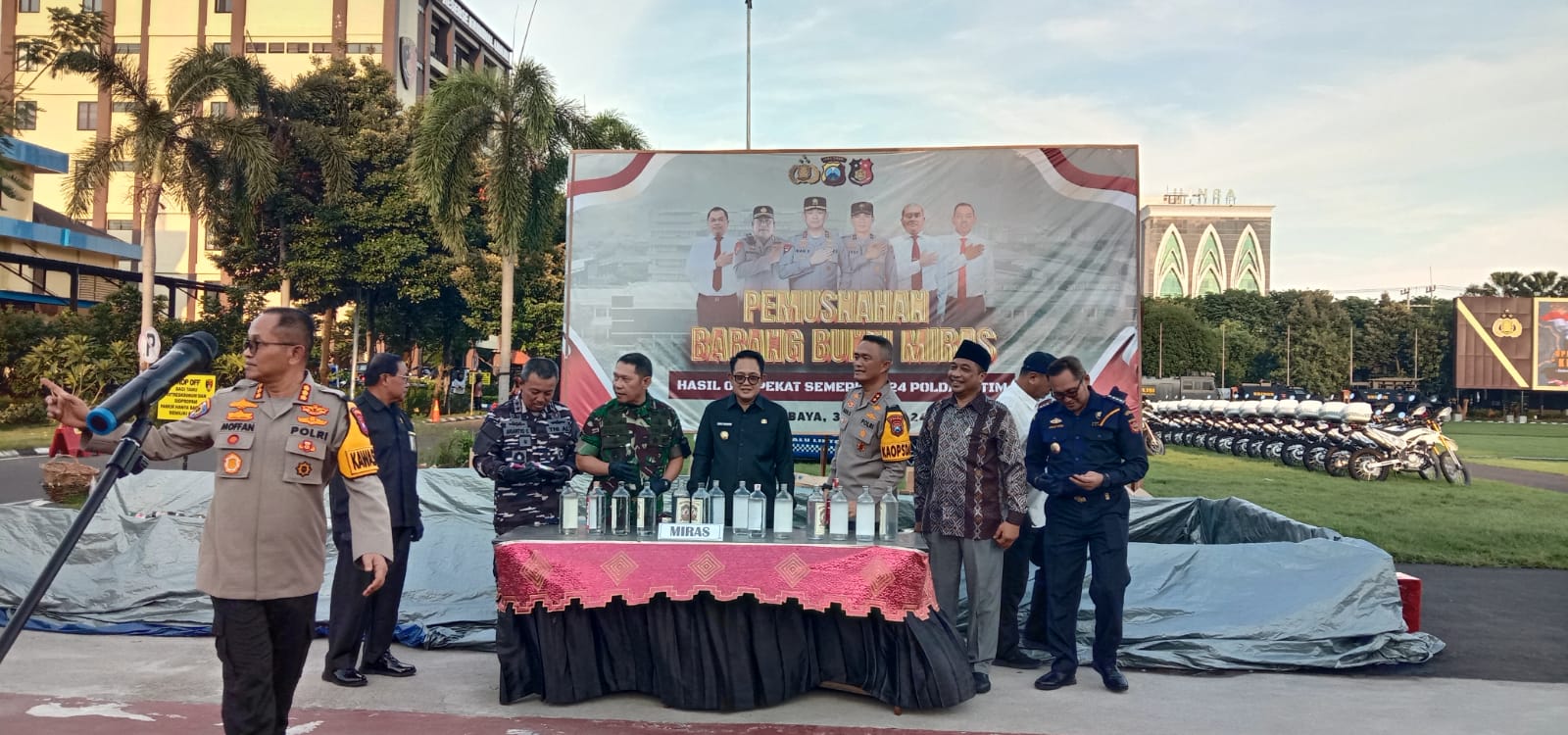 Polda Jatim Menggelar Press Release hasil ungkap operasi pekat Semeru 2024 di hadiri, Kapolda Jatim Irjen Pol. lmam Sugianto, M.Si, Wakapolda Jatim, Dirresnarkoba Polda Jatim, Dirrkrimum Polda Jatim, Kejati, Bea cukai, KA BNNP, PJ. Gubernur Jatim, Pangdam V Brawijaya, beserta jajarannya. Rabu, (3/4/2024)