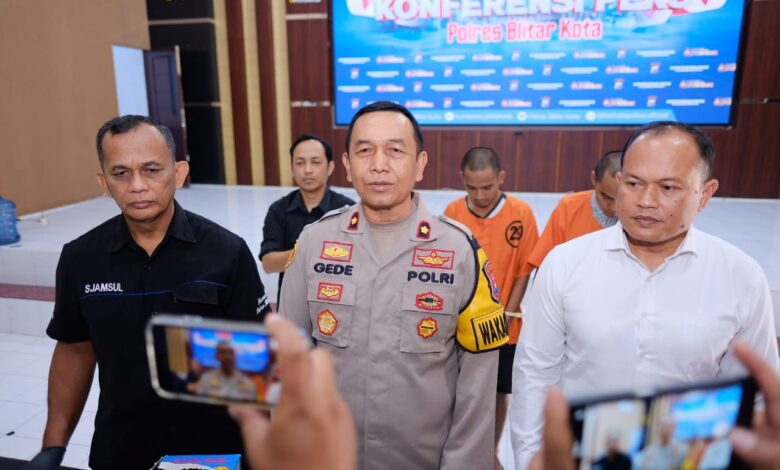 “ltupun, 2 orang tersangka langsung ditahan berikut barang bukti juga disita,” kata Wakapolres Blitar Kota Kompol I Gede Suartika saat konferensi pers, Senin (24/06/2024).
