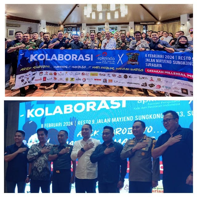 SURABAYA – Asosiasi Pengusaha Kafe dan Resto Indonesia (Apkrindo) Surabaya berkolaborasi dengan Polrestabes Surabaya mengajak masyarakat menyukseskan Pemilu 14 Februari 2024.