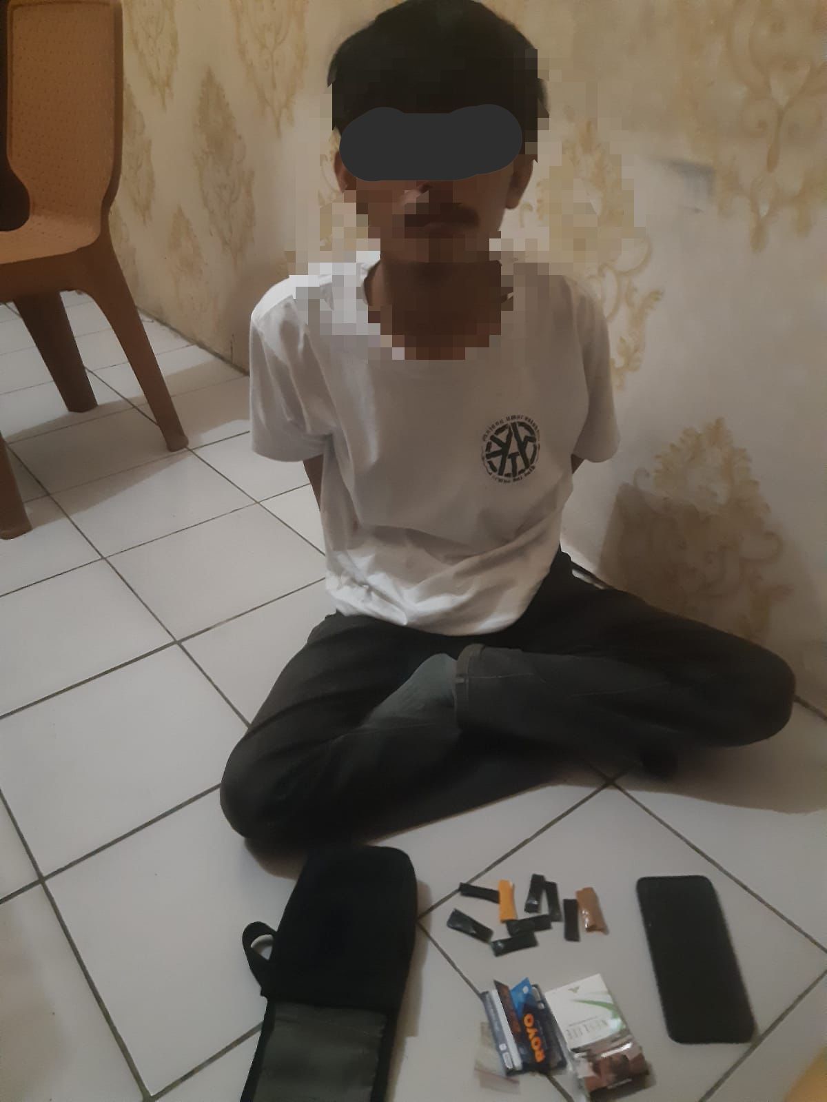 – 1 (satu) bungkus paket kecil yang di bungkus pipet warna kuning diduga berisikan narkotika jenis sinte (tembakau sintetis).