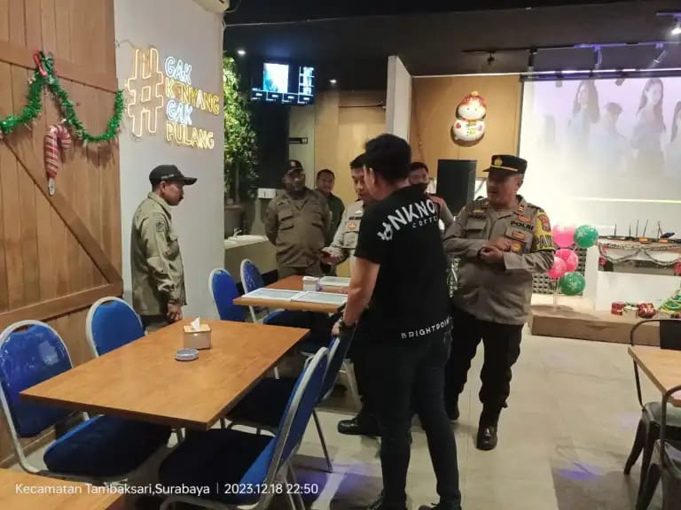Surabaya – Kapolsek Tambaksari Kompol Ari Bayuaji.,S.E.,S.I.K.,M.Si mengatakan “Kita menerima aduan dari masyarakat mengenai tempat hiburan malam sucor kitchen yang meresahkan dan mengganggu warga dikarenakan suara sound sistem yang dikeluarkan dari tempat hiburan tersebut sangat keras. Senin, (18/12/2023)