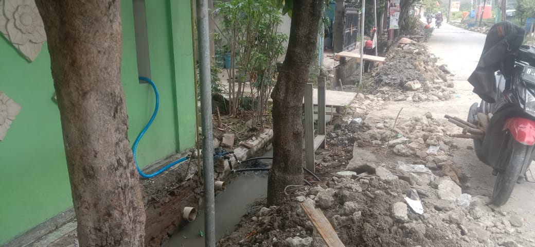 ” Ini tanah galian pekerjaan saluran air sangat menggangu penguna jalan dan tidak di rapihin letaknya,” Jawab ( Y ) dengan singkat.