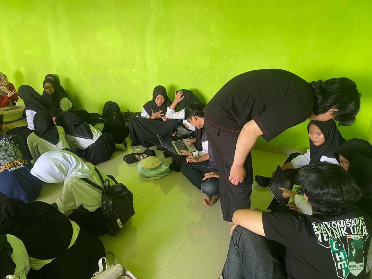 Ketua Pelaksana yang juga merupakan Pengurus HMI Komisariat Teknik UIKA, Ahmad Parlagutan RKT, turut memberikan semangat dan motivasi kepada siswa/i dalam kegiatan penyuluhan teknologi ini.