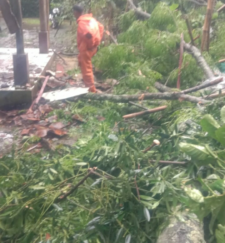 Adapun Kronologis kejadian di sebabkan terjadi karna curah hujan dengan intensitas tinggi disertai angin kecang yang mengakibat satu pohon tumbang dan menimpa sebagian rumah milik gungun