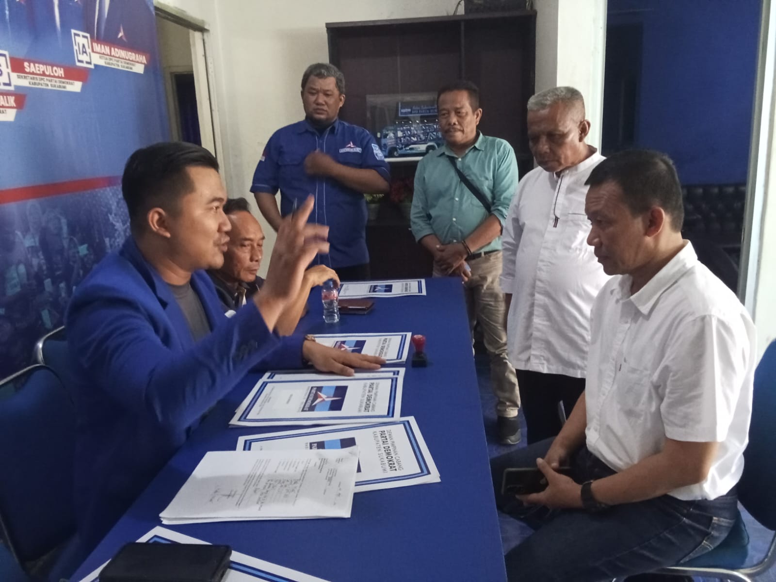Di hari akhir penutupan penjaringan bakal Calon Bupati dan Wakil Bupati Sukabumi Periode 2024-2029, Habib Mulki di dampingi jajaran Penasehat Mendaftar Bacalon ke Partai Demokrat DPD Sukabumi. Kamis (25/04/2024).