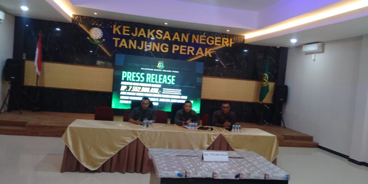 Surabaya – Lensareportase.com -Bertempat di Aula Kejaksaan Negeri Tanjung Perak, Kepala Kejaksaan Negeri Tanjung Perak Aji Kalbu Pribadi didampingi oleh kepala seksi intelijen dan kepala seksi tindak pidana khusus telah melaksanakan press release terkait penerimaan penitipan uang pengganti atas dugaan tindak pidana korupsi secara bersama sama terkait pemberian kredit dari PT Bank BPD Jatim cabang utama kepada PT Semesta Eltrindo Pura sebesar Rp.7.552.800.498(tujuh miliar lima ratus lima puluh dua juta delapan ratus ribu empat ratus sembilan puluh delapan rupiah) dari tersangka BK dan HK. Dalam kegiatan release tersebut datang pula puluhan media massa,baik dari televisi, cetak, maupun online.